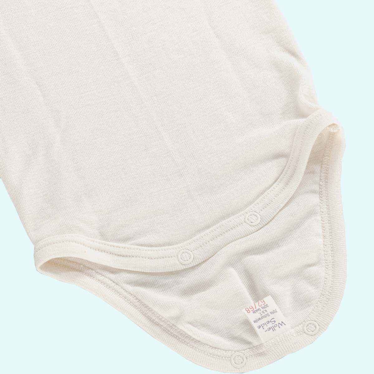 Schmeichelhafter Baby Body kurzarm einfarbig von Cosilana aus kbT merino Schurwolle/Seide