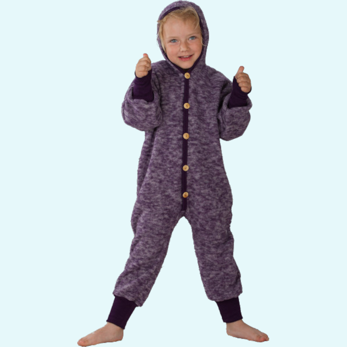 Flauschiger Wollfleece Winter Overall für Babys mitwachsend mit Kapuze von Cosilana aus BIO merino Schurwolle & Baumwolle