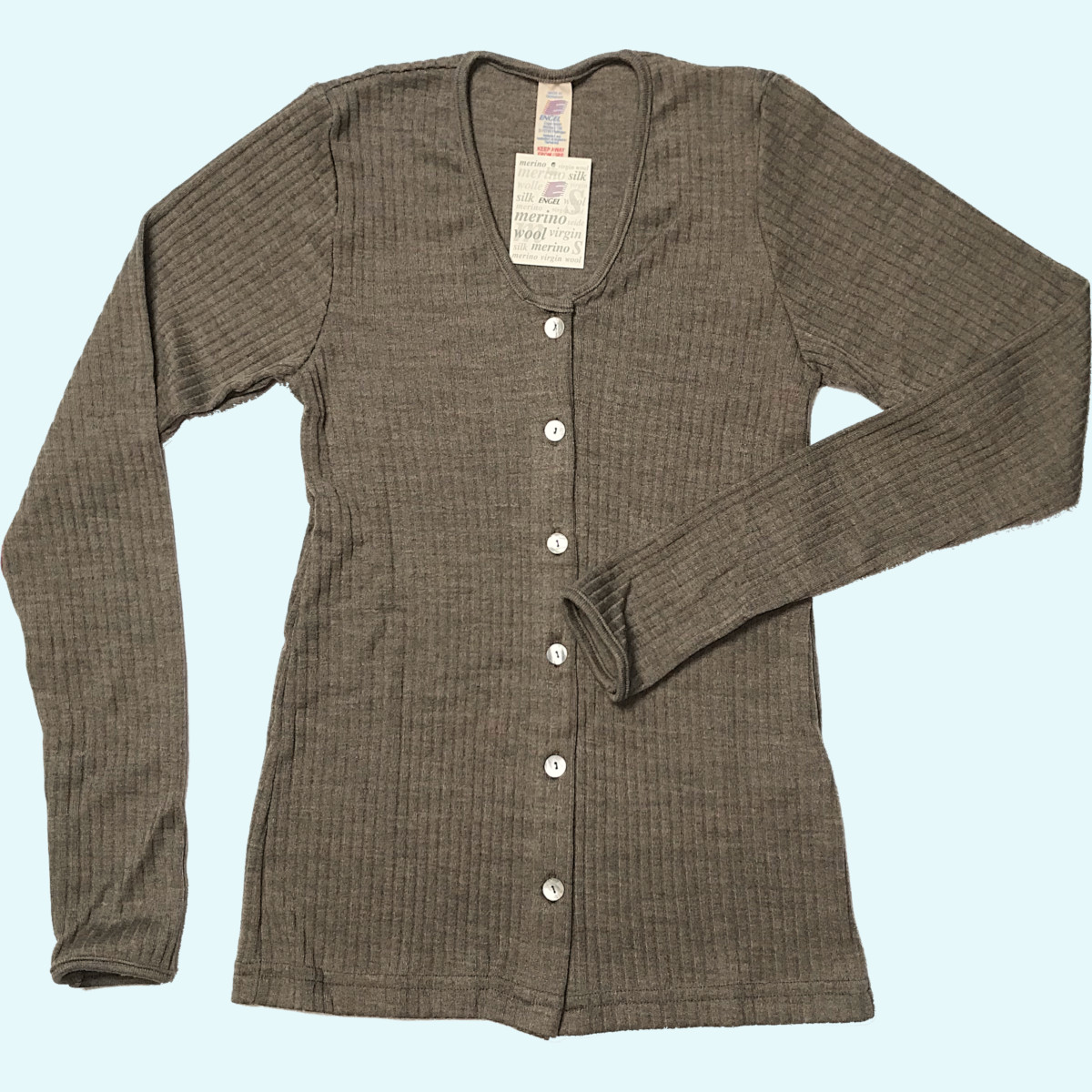 Sondermodell - Engel Damen Cardigan walnuss Rippestrick aus BIO merino Schurwolle & Maulbeer-Seide GOTS