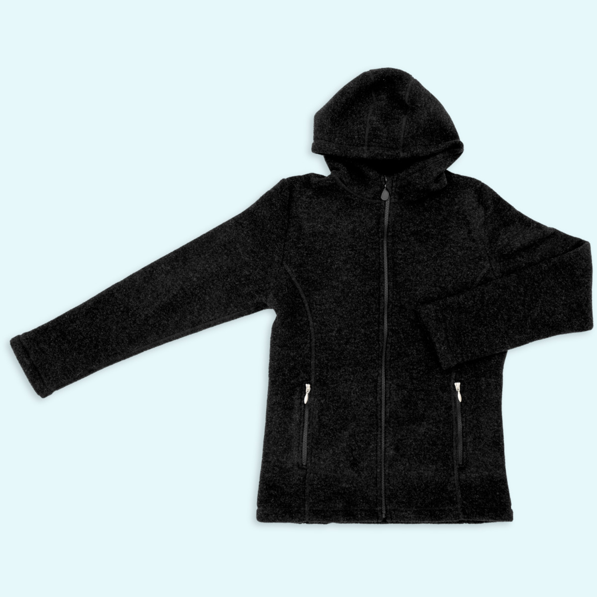 Herren Jacke mit Kapuze - schwarz melange - Schurwoll-Fleece von Engel