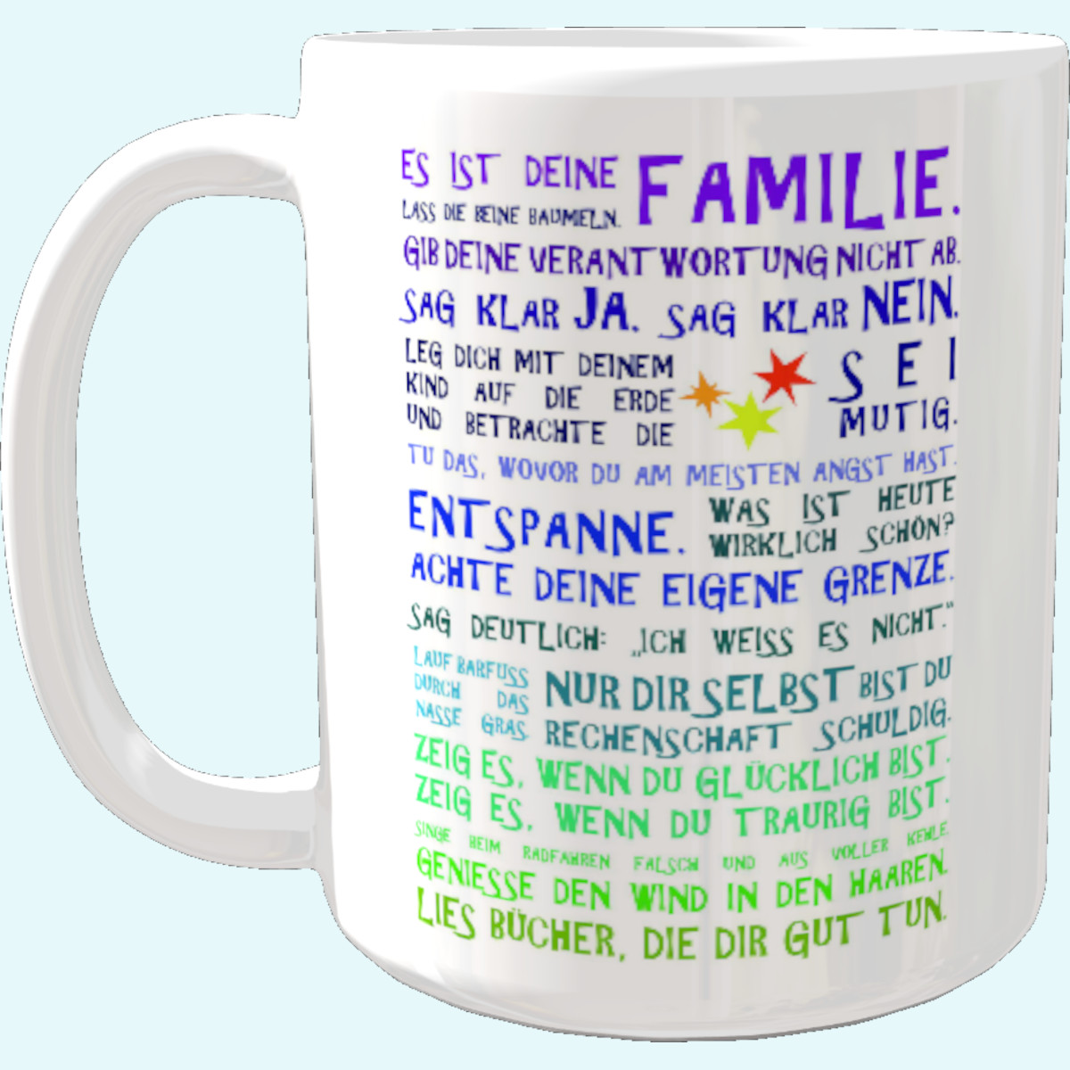 Panorama Tasse mit inspirierendem Text von Julia Dibbern, Autorin von zB. "Geborgene Babys"