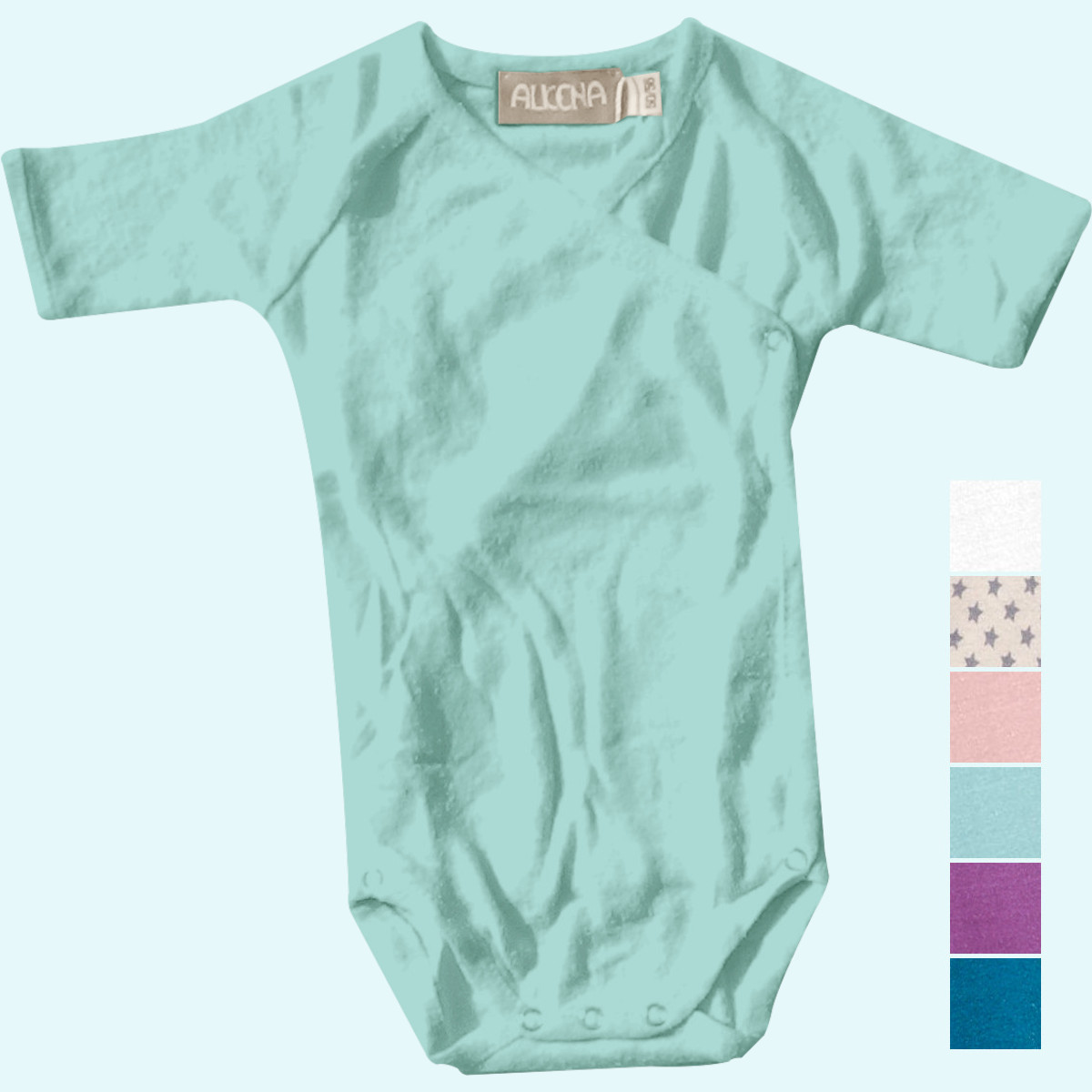 Luftiger Baby Wickelbody kurzarm, aus reiner Bourette Seide von Alkena - ideal im Sommer und bei Neurodermitis