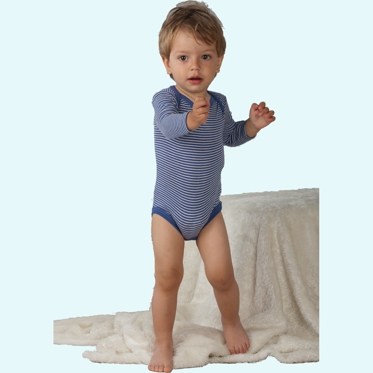 Angenehmer Baby Body langarm geringelt von Cosilana aus BIO merino Schurwolle/Seide - ideal im Winter