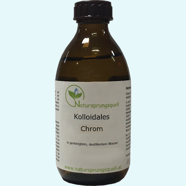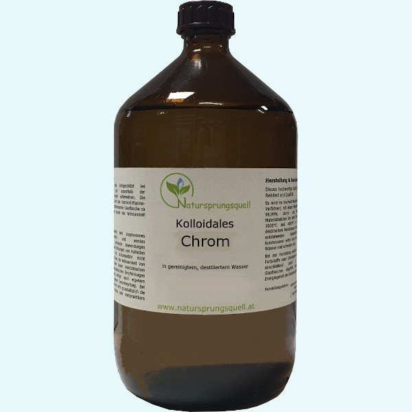 Das Kolloidale Chrom ist von höchster Reinheit und Qualität. Für die Herstellung wird reinstes 99,95 % Chrom und Reinstwasser verwendet.