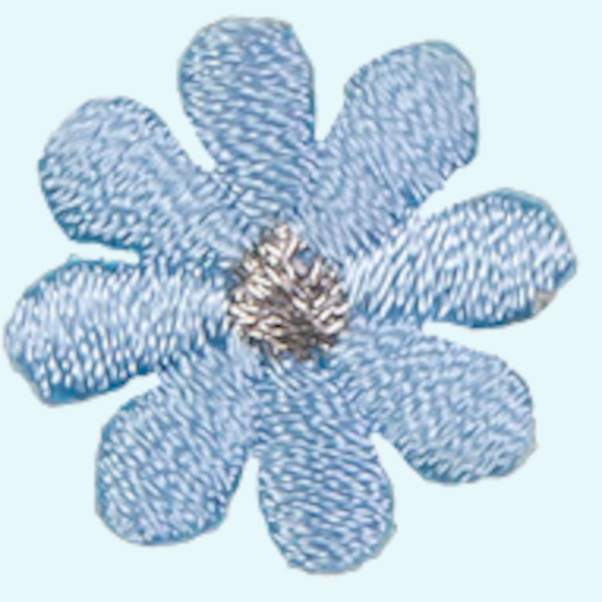Veno Bügelapplis: Blume: 20mm hellblau/silber