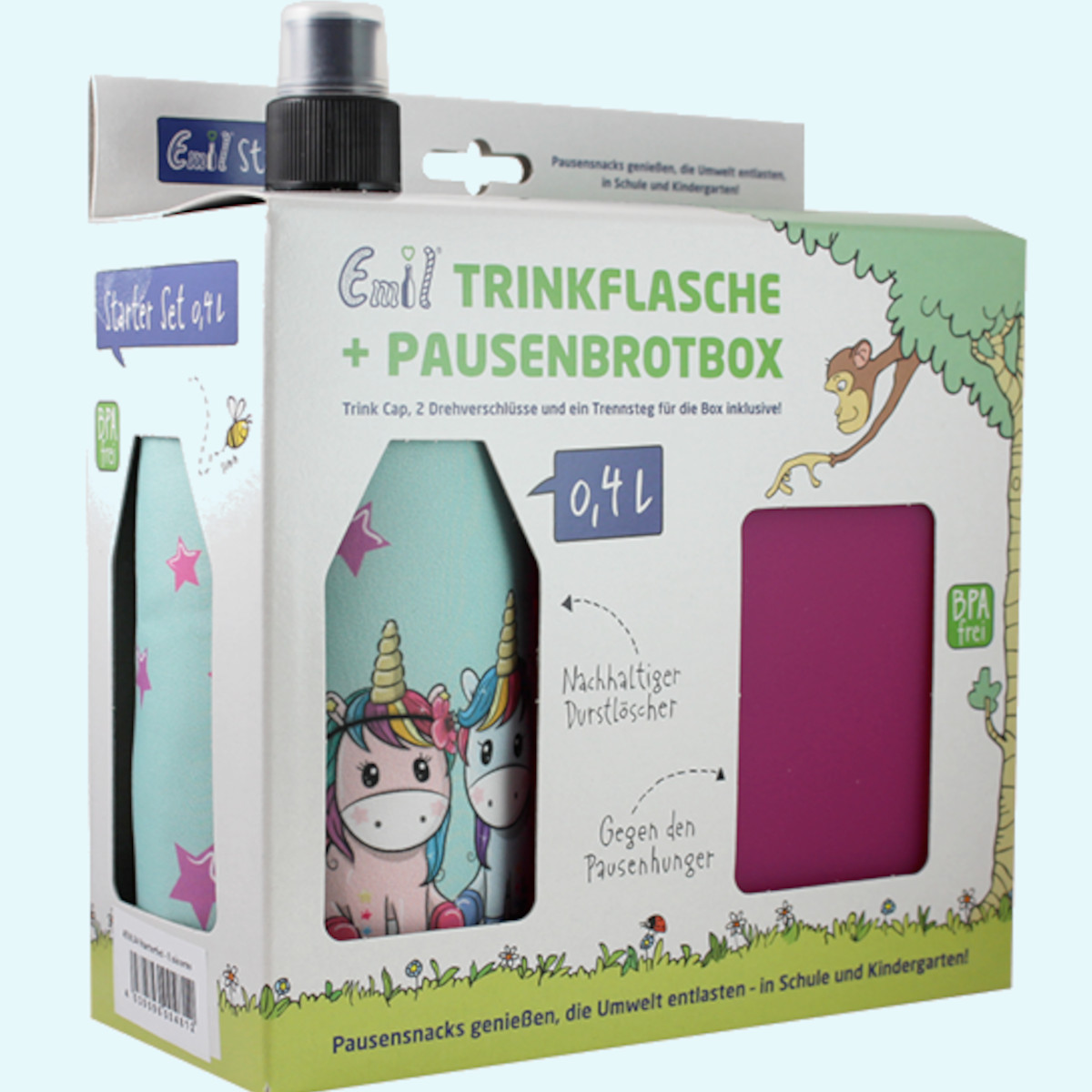 Starter-Set: Emil die Flasche - Flasche, Brotdose, Trinkcap, Ersatzverschlüsse