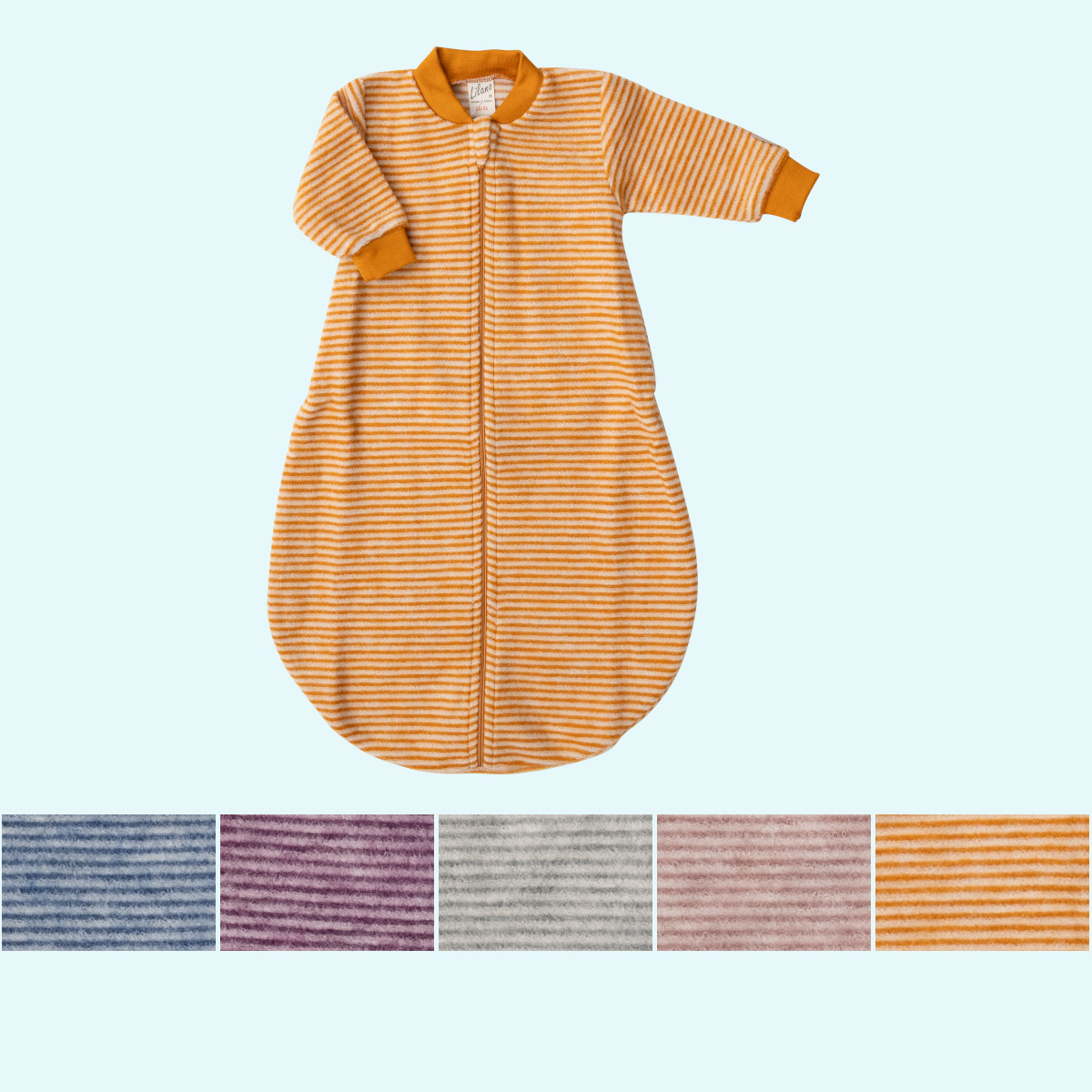 Dieser Haut-schmeichelnde Schlafsack aus Schurwoll-Frottee-Plüsch ist der beliebte Traumbegleiter für zuhause - egal ob im Kinderbett, oder im Kinderwagen.