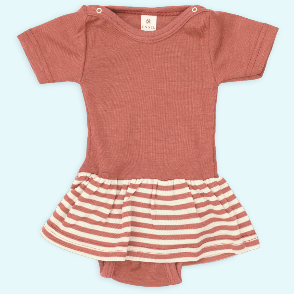 Süßes Engel Baby Body Kleidchen kurzarm aus kbT merino Schurwolle/Seide - ideal im Winter & bei empfindlicher Haut GOTS