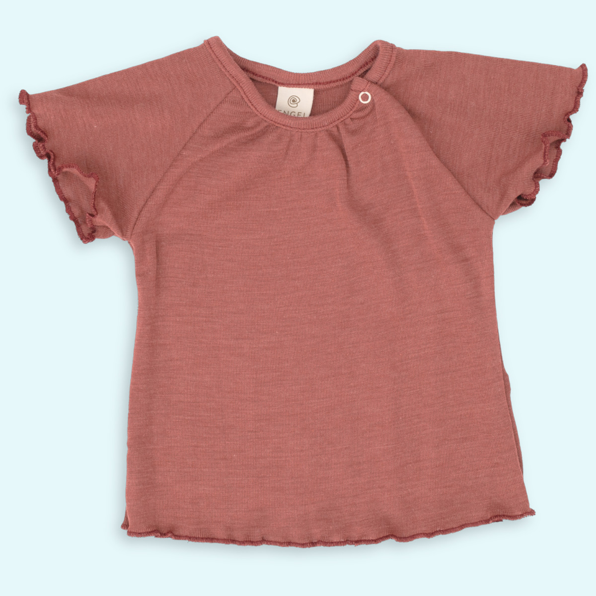 Baby Shirt mit Rüschen - kurzarm - Uni Farben - Wolle / Seide von Engel