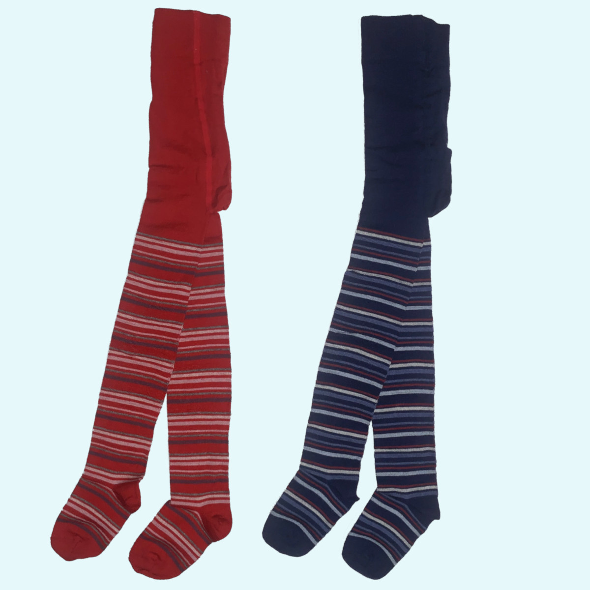 Warme Grödo Kinder Strumpfhose rot & blau geringelt aus BIO merino Schurwolle & Baumwollefür den Winter - GOTS